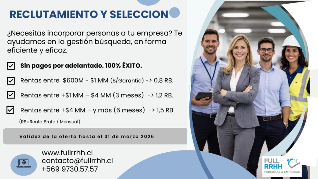 Búsqueda de personas en forma rápida y eficiente.– 100% al éxito.– Sin adelantos– Los honorarios se pagan cuando el candidato firma la carta oferta.